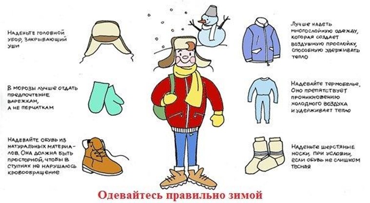 Питание и движение: перед выходом на мороз рекомендуется плотно поесть теплой пищи. На улице старайтесь больше двигаться: если чувствуете, что начинаете замерзать, сделайте несколько активных упражнений (приседания, махи руками).· Запасной вариант: Если планируете долго находиться на улице, имейте при себе запасные варежки и носки.